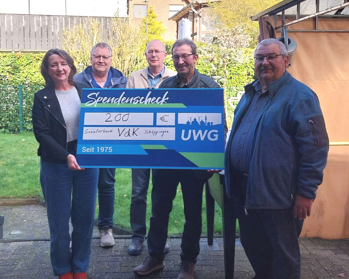 💚 𝗚𝘂𝘁𝗲𝘀 𝘁𝘂𝗻 𝗶𝗻 𝗦𝗰𝗵𝗼̈𝗽𝗽𝗶𝗻𝗴𝗲𝗻! Die UWG Schöppingen hat dem 𝗩𝗱𝗞 𝗢𝗿𝘁𝘀𝘃𝗲𝗿𝗯𝗮𝗻𝗱 𝗦𝗰𝗵𝗼̈𝗽𝗽𝗶𝗻𝗴𝗲𝗻 eine Spende von 200 € überreicht 🤝 Der VdK vertritt mit 147 Mitgliedern die Interessen von Menschen, die sozialrechtliche Beratung und Unterstützung brauchen – eine unverzichtbare Institution in unserer Gemeinde. Das Geld fließt direkt in die nächste Mitgliederversammlung – für mehr Gemeinschaft und Zusammenhalt! 💪 Vielen Dank an Rudolf Küper, Franz-Josef Naber und Günther Reinermann für Euer Engagement! 🙏 #UWG #Schöppingen #Eggerode #VdK #SozialesEngagement #Gemeinde #Ehrenamt #Gemeinschaft #NRW #Sozialverband #SpendeButton