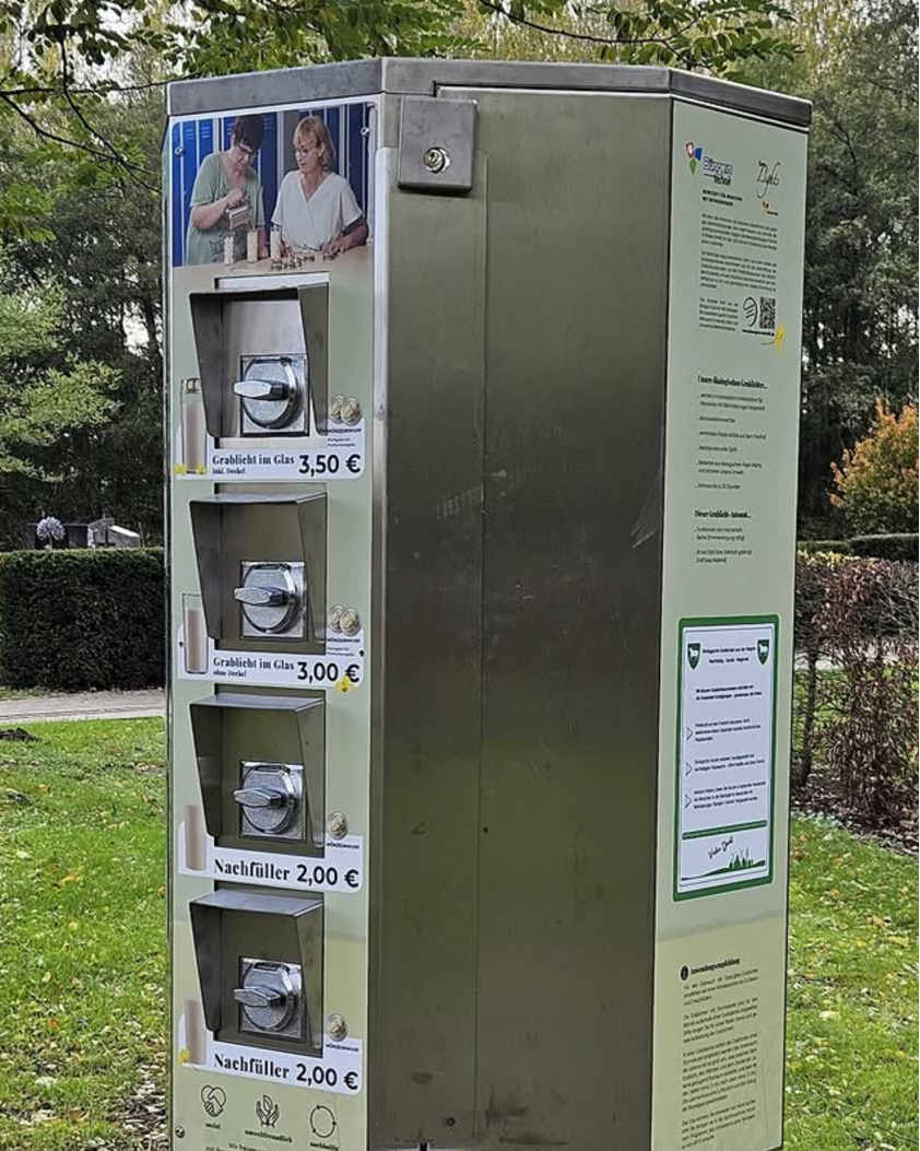 Nachhaltig und inklusiv: Ökologische Grablichter in Schöppingen Am neuen Friedhof gibt es jetzt einen Automaten mit umweltfreundlichen Grablichtern aus Rapswachs – wiederbefüllbar, rußarm und regional hergestellt. Die UWG Schöppingen hatte die Idee und brachte 2024 den Antrag im Gemeinderat ein. Umsetzung mit Unterstützung von LEADER Westmünsterland und der Büngern-Technik, wo Menschen mit Behinderung die Kerzen fertigen. Ein Projekt, das Müll vermeidet und gleichzeitig soziale Teilhabe stärkt. #UWGSchöppingen #Nachhaltigkeit #Inklusion #Schöppingen #LEADER #Umweltschutz #GemeinsamGestalten #EggerodeButton